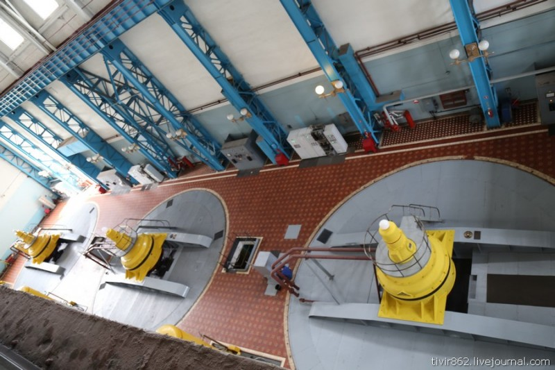 В этом помещение находится шесть огромных щитов, по паре на каждый из трех гидроагрегатов. В случае необходимости, они быстро опускаются вниз и перекрывают путь потокам воды. Пункт управления всей гидроэлектростанцией. При посещение Нарвской ГЭС я обратил внимание на радушие и жизнерадостность работающих здесь людей.