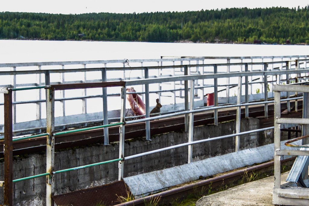 На многих ГЭС обитают мохнатые друзья человека — собаки, кошки, иногда даже заяц. Разумеется, на сами станциях им делать нечего, слишком опасно. Поэтому встречаются они традиционно у входа. Вот эти встречали нас под дождем на Нива ГЭС-3. Накануне в Кандалакше сэкономил в обед несколько кусков мяса, которые и пригодились теперь. Когда мясо было съедено, проинформировал зверей, что больше не осталось, но они не поверили и сопровождали меня все время, пока мы не зашли за ворота. Собаки остались мконуть под небольшим дождиком.