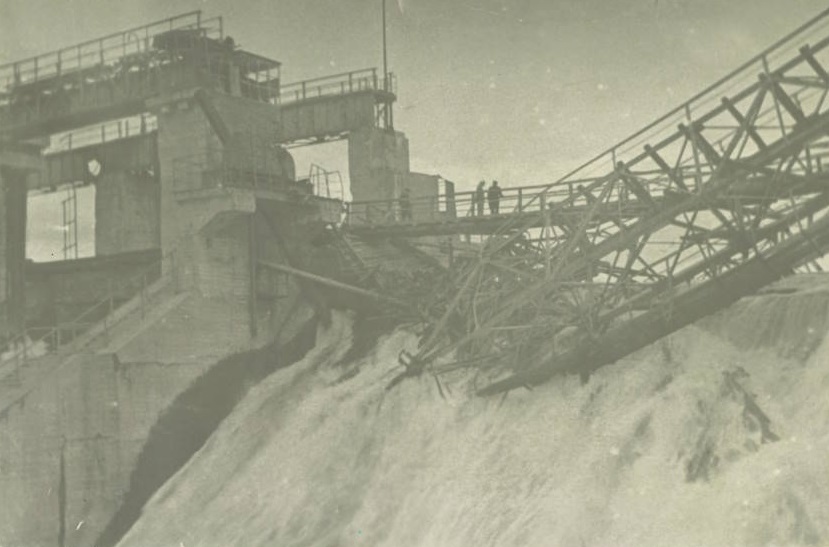 «Все основные гидроагрегаты станции были взорваны — сильно пострадали роторы генераторов, были разрушены и сгорели баки маслонапорной установки. На трех из четырех машин взрывами были перебиты валы турбин, пострадали крышки турбин и закладные части. Рабочее колесо агрегата № 1 было заклинено в спиральной камере, а на агрегате № 2 рабочее колесо упало в отсасывающую трубу. Все детали были покрыты толстым слоем ржавчины. Масштаб разрушений был таким, что казалось, агрегаты не подлежат восстановлению и должны быть изготовлены заново. Но замена агрегатов новыми заняла бы много времени, а электроэнергия была нужна как можно скорее. Было принято решение о восстановлении гидроагрегатов»