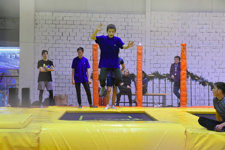 Под руководством опытных тренеров школьники на время переквалифицировались в акробатов. Сальто с переворотом, вращения и другие невероятные кульбиты со стороны выглядели как что-то невероятное. Отличное исполнение для первого раза на батутах! А главное — хороший заряд бодрости и настроения.